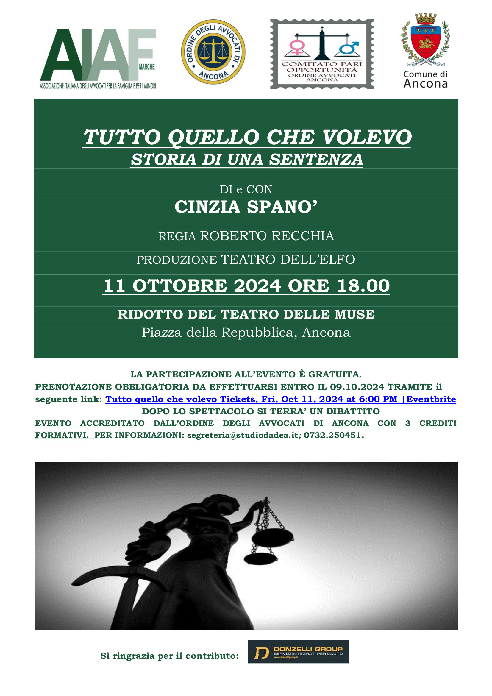 DOPO LO SPETTACOLO SI TERRA’ UN DIBATTITO EVENTO ACCREDITATO DALL’ORDINE DEGLI AVVOCATI DI ANCONA CON 3 CREDITI